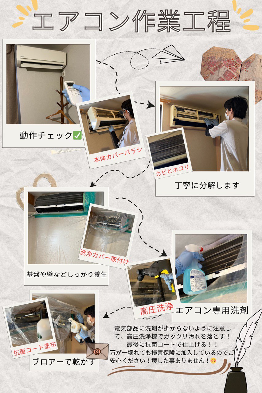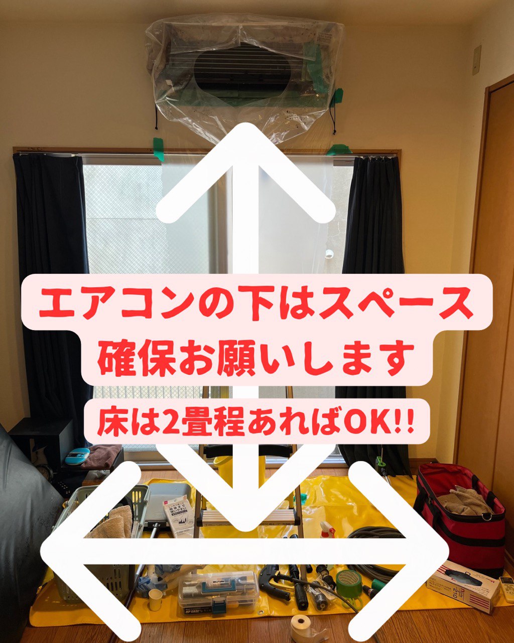 A エアコンの下にある家具や荷物、また貴重品や壊れやすい物は移動お願いします。どうしても移動できない物は事前に相談してください。スタッフがお手伝いさせていただくか養生をしっかりいたします。
