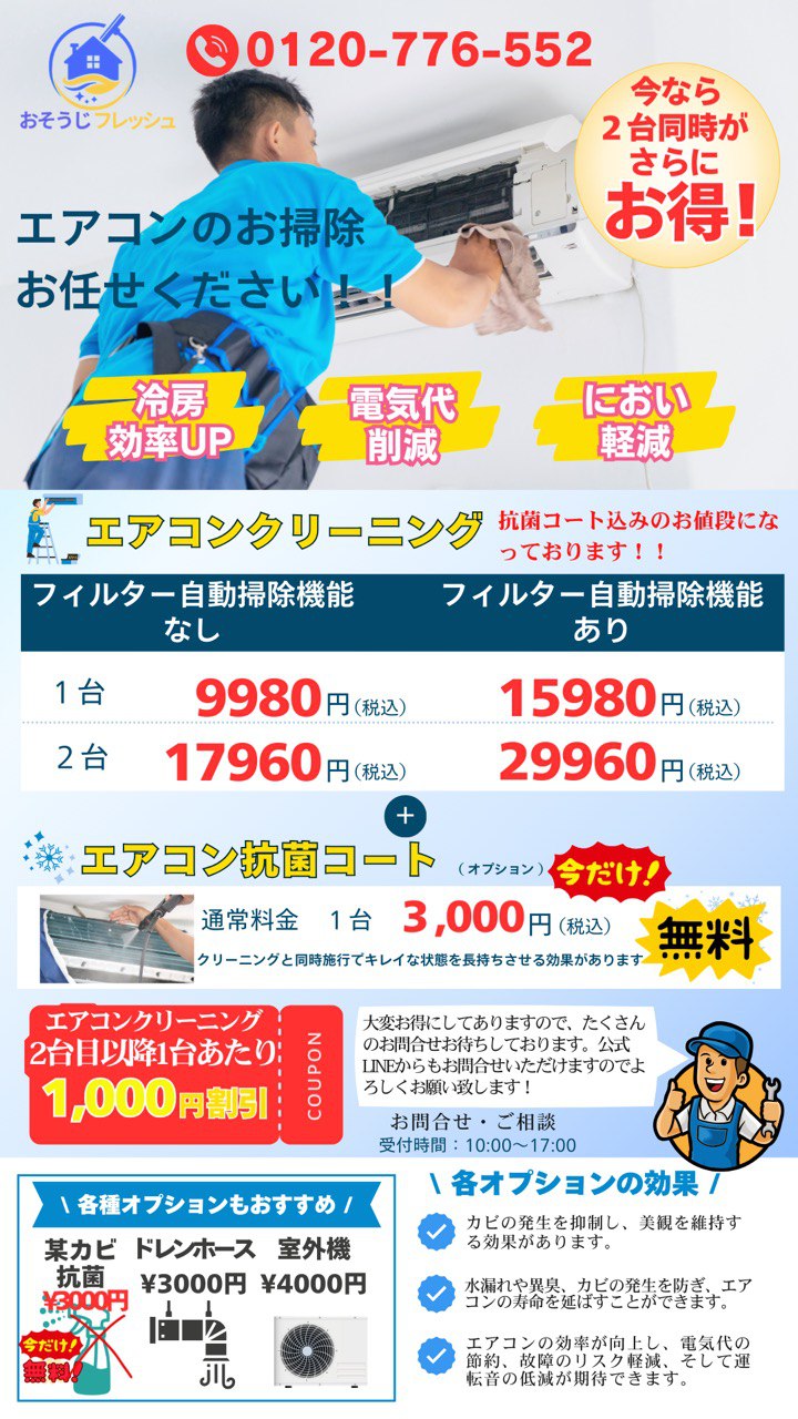 A 冷暖房効率の向上、電気代節約、エアコンの寿命延長、故障リスク軽減などの効果が期待できます。猫や犬を飼われてるご家庭は、毛が詰まりやすいのでこまめな清掃が必要です。